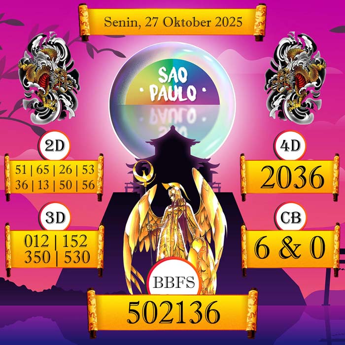 BOCORAN SAO PAULO TERBAIK HARI INI SENIN 27 OKTOBER 2025 – Halo semua sobat pencinta permainan togel semoga semua sobat selalu dalam keadaan sehat ya.